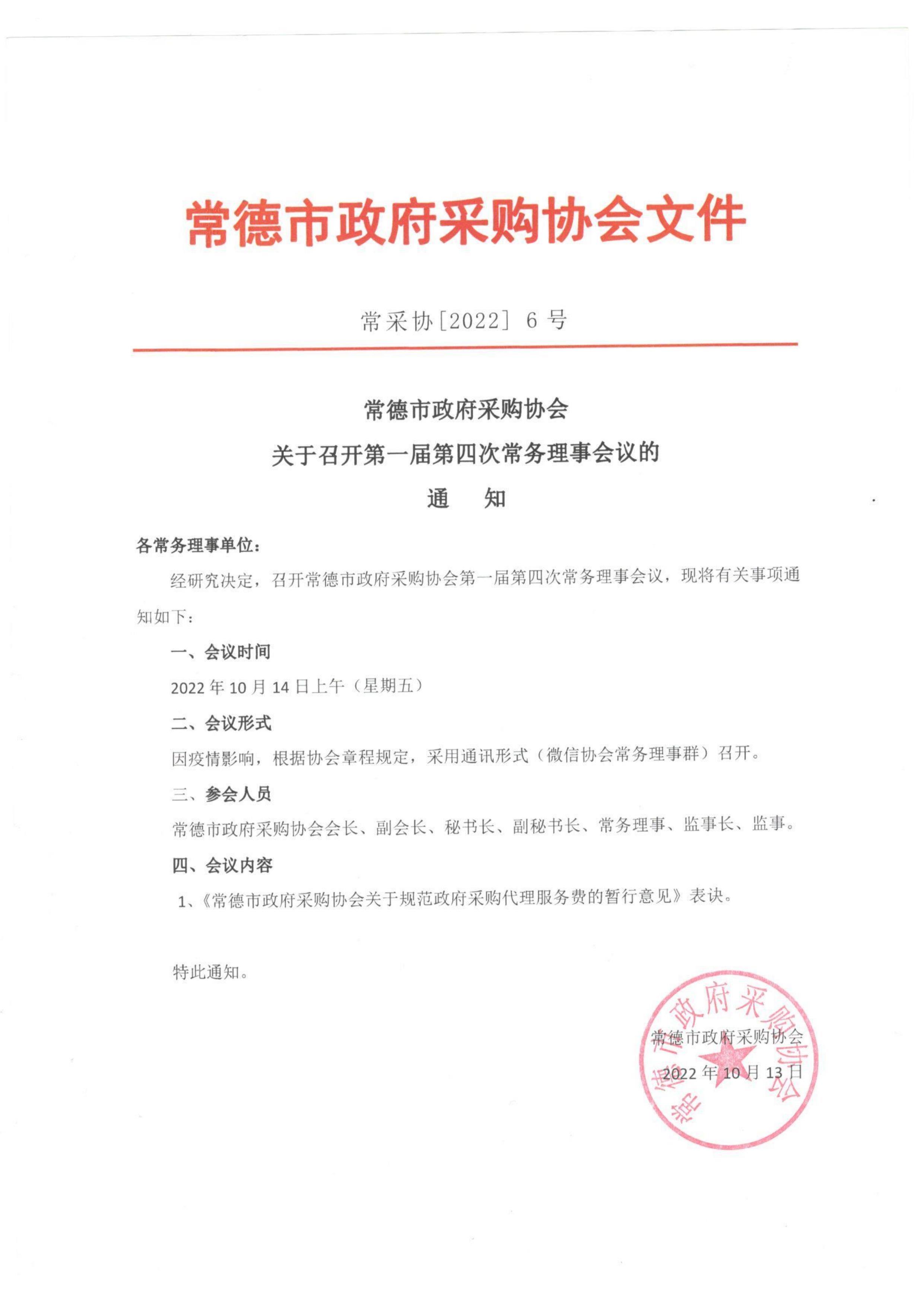 常采协【2022】06号-关于召开第一届第四次常务理事会议的通知