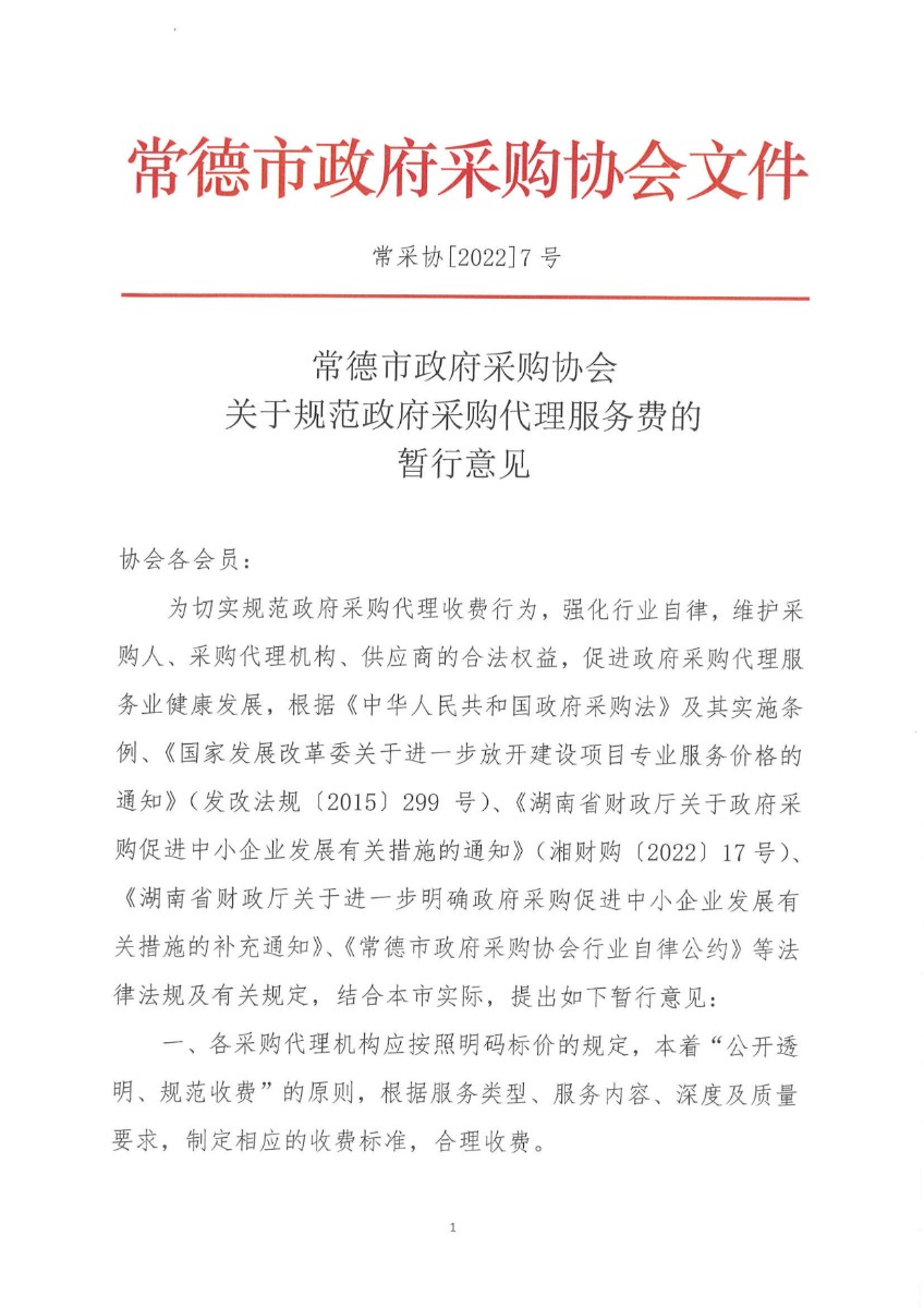常采协【2022】07号-关于规范政府采购代理服务费的暂行意见
