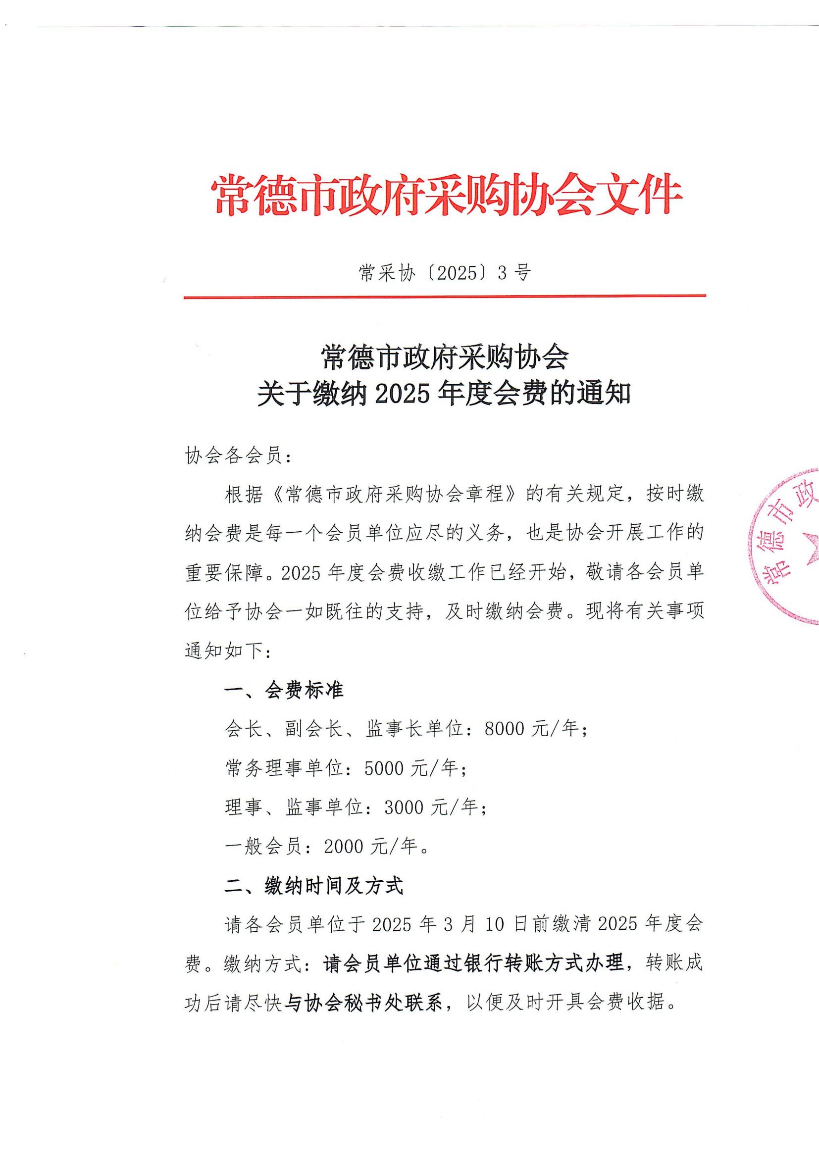 常采协【2025】03-关于缴纳2025年度会费的通知