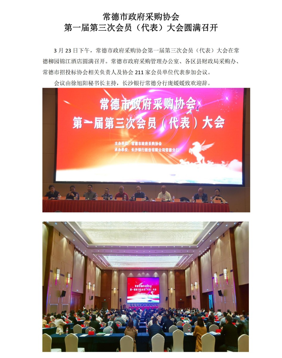 3 月 23 日下午,常德市政府采购协会第一届第三次会员(代表)大会在常德柳园锦江酒店圆满召开。